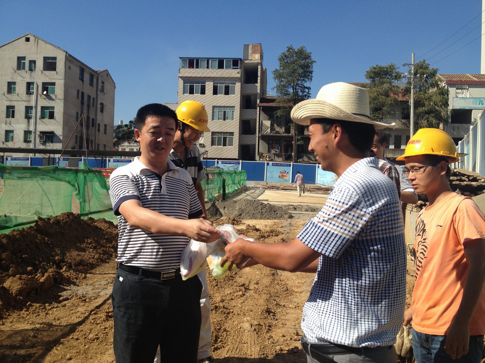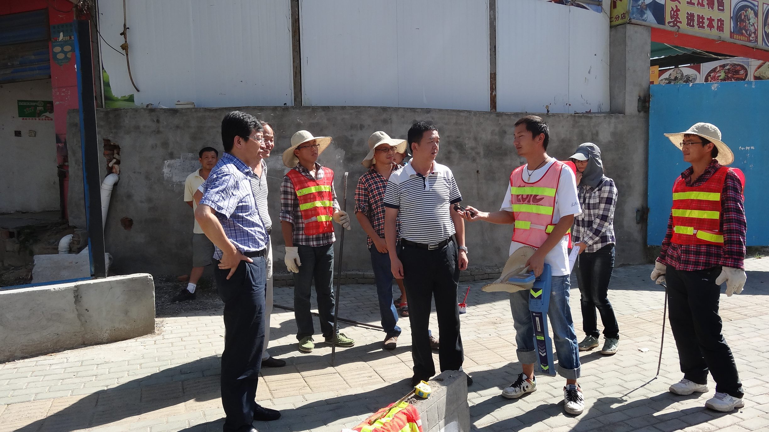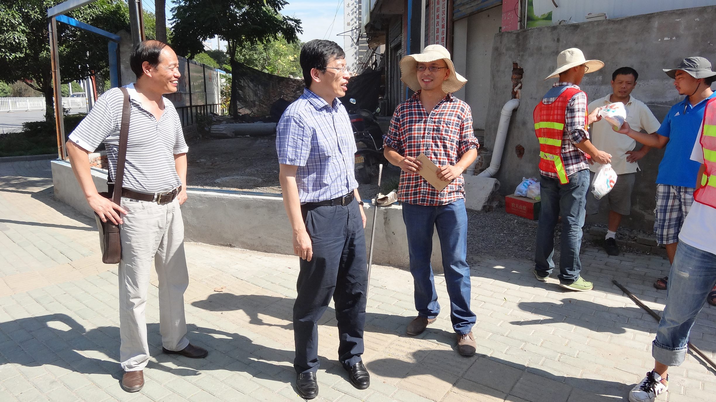 ??? 近段時間,武漢市出現(xiàn)了連續(xù)高溫天氣,但為了保障所承擔項目的按時推進,公司監(jiān)理、勘測、測試等外業(yè)人員仍然在烈日下堅守工作崗位。8月16日,公司黨委書記蔡輝、副總經(jīng)理趙世杰、總經(jīng)理助理胡軍等一行在監(jiān)理公司、勘測設(shè)計院負責人的陪同下,對部分工地進行了走訪慰問,為高溫下堅持工作的員工送上一份清涼。